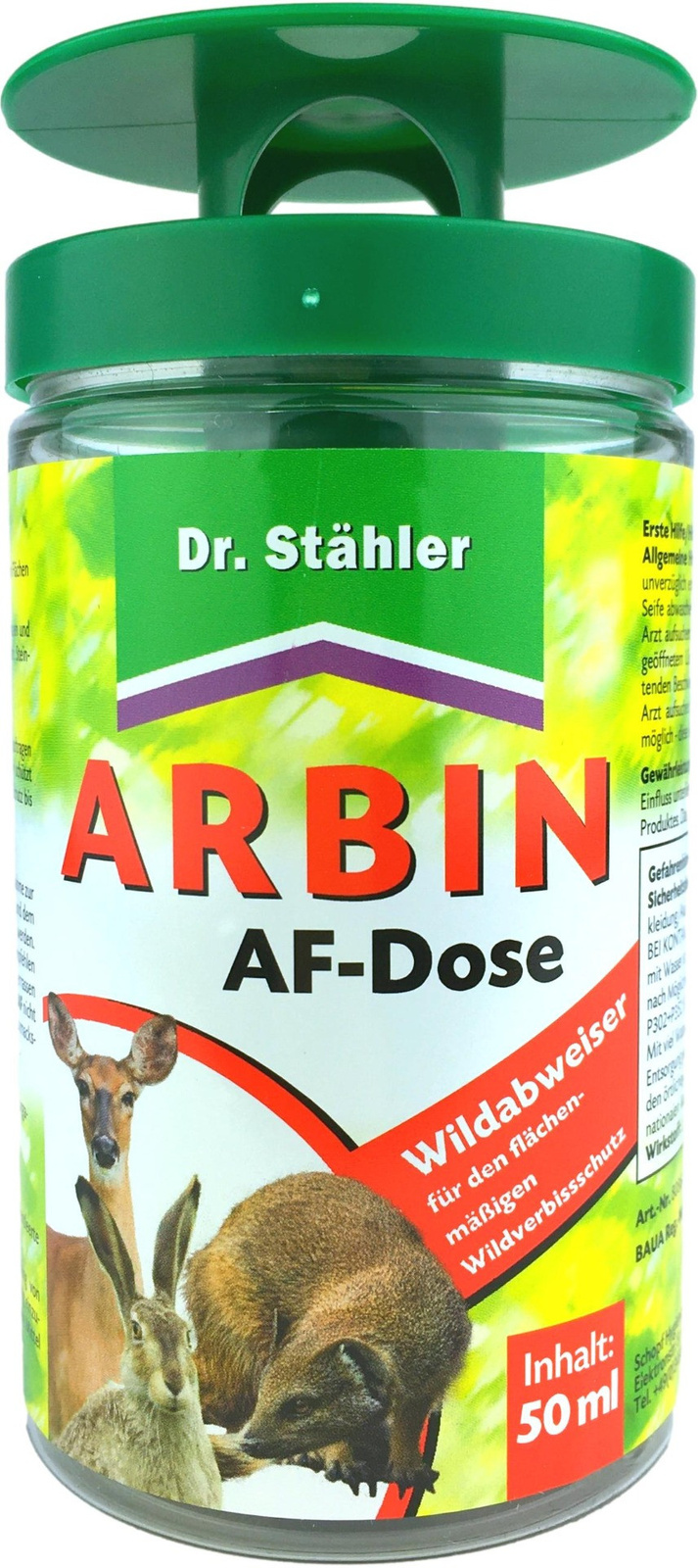 Arbin AF Dr.Stahler je spolehlivý repelent, který účinně chrání různé plodiny před škodlivou činností volně žijících živočichů. Díky svému jedinečnému složení založenému na vonných látkách, které nejsou šetrné k zvířatům, poskytuje Arbin AF dlouhodobou ochranu rostlinám a pečuje o jejich zdraví a vývoj.