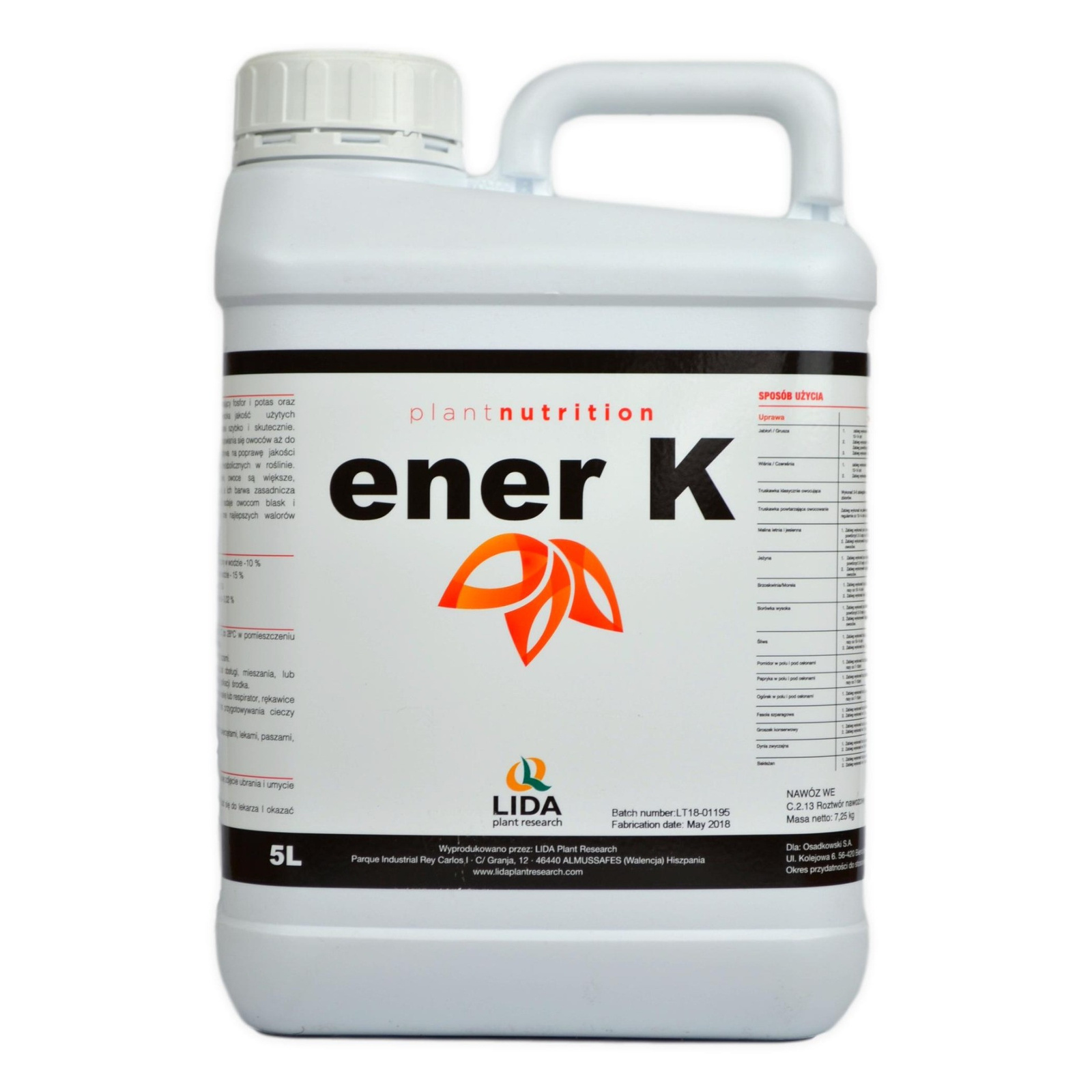 Ener-K 5L LIDA to innowacyjny stymulator wzrostu roślin, który dzięki unikalnej formule poprawia kondycję roślin oraz wspiera ich rozwój. Preparat jest łatwy w użyciu i odpowiedni dla szerokiego spektrum gatunków roślin, w tym roślin uprawnych, ozdobnych oraz ogrodowych.