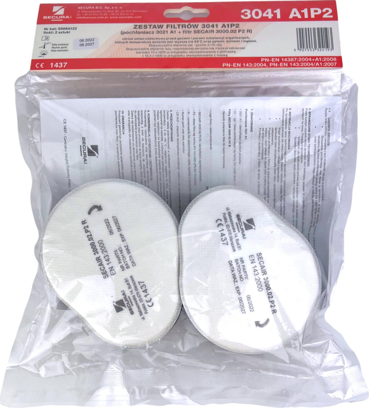 Zestaw filtrów 3041 A1P2 R (pochłaniacz 3021 A1 + filtr SECAIR 3000.02 P2 R) po skompletowaniu z półmaską lub maską skutecznie chroni układ oddechowy przed gazami i parami substancji organicznych, których temperatura wrzenia jest wyższa niż 65 °C oraz pyłami, dymami i mgłami. Dopuszczalne stężenie par i gazów wynosi 0.1% obj. a stężenie fazy rozproszonej aerozolu do 10 x NDS.