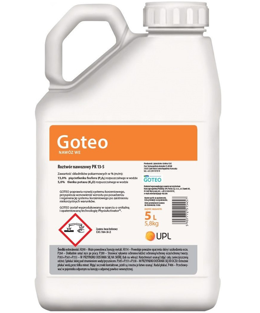 Goemar Goteo 5L UPL je založen na jedinečné a patentované technologii PhysioActivator™. Hnojivo zlepšuje vývoj kořenového systému, urychluje obnovu růstu po výsadbě a regeneraci kořenového systému po nepříznivých podmínkách.