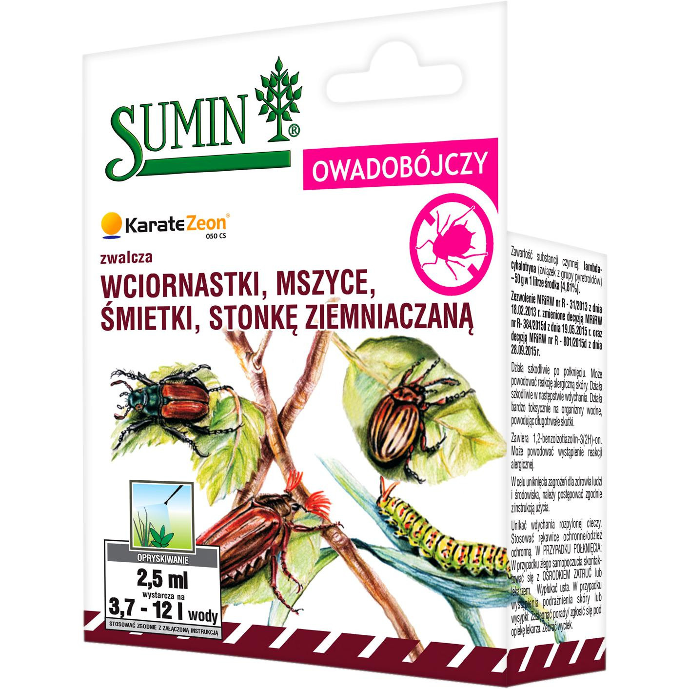 Karate Zeon 050 CS 2,5ml Sumin to środek owadobójczy w formie zawiesiny kapsuł w cieczy do rozcieńczania wodą, o działaniu kontaktowym i żołądkowym. Jest przeznaczony do zwalczania szkodników gryzących i ssących w roślinach rolniczych, sadowniczych i warzywnych.