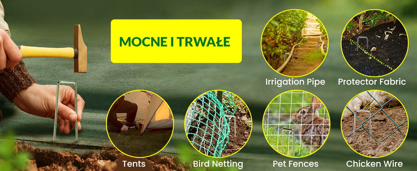 Díky svým velkým rozměrům zaručují kovové kolíky stabilní uchycení na agrotextiliích, agrotechnice apod., udržovat je při zemi.