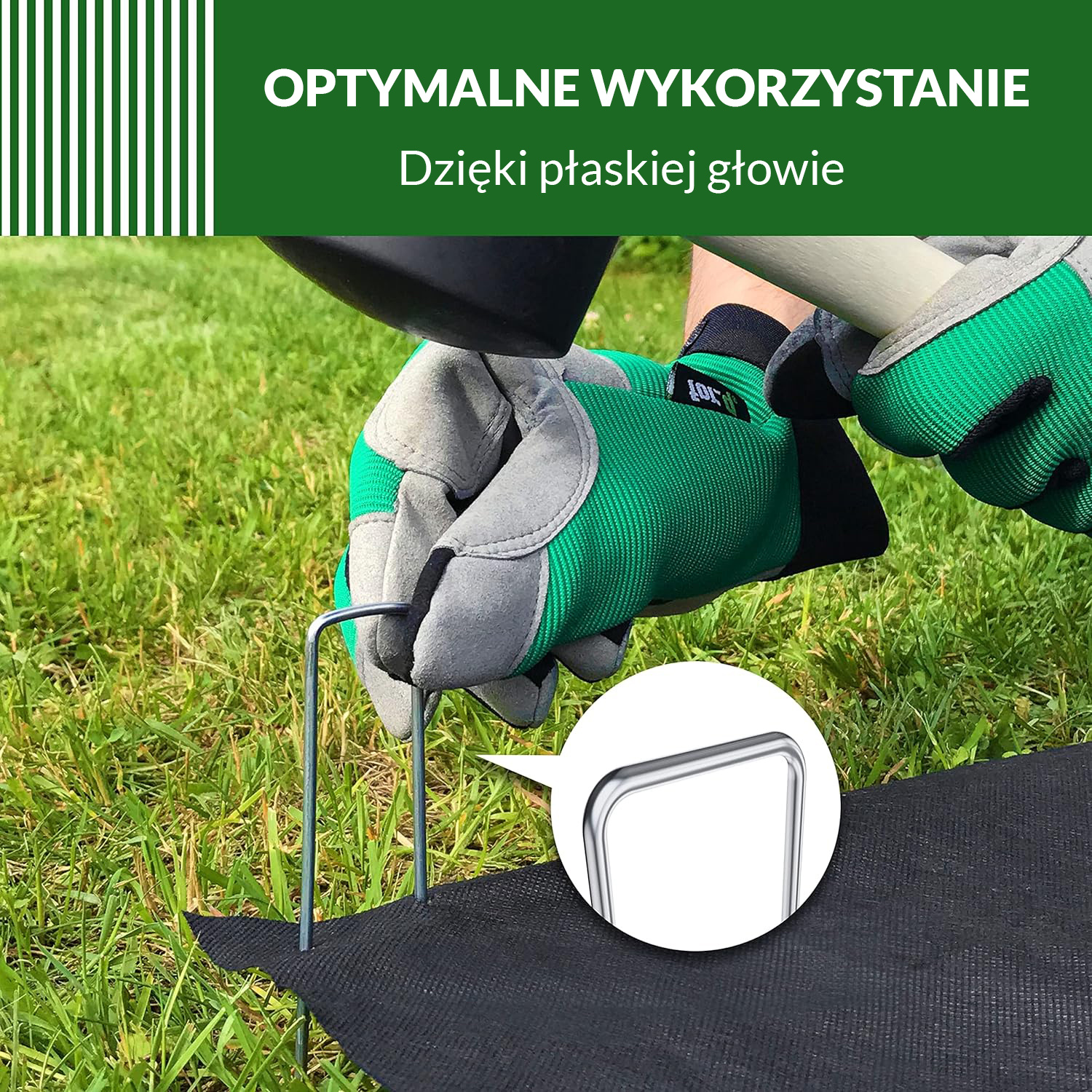 Díky galvanickému pokovení jsou hmoždinky odolné proti povětrnostním vlivům, což zaručuje dlouhodobou ochranu proti korozi. Tvar písmene "U" usnadňuje stabilní upevnění různých prvků na zahradě, jako jsou agrotextilie proti plevelu, sítě, ploty nebo konstrukční prvky. Díky širokému spektru použití je kolík nepostradatelnou součástí při montáži plotů, dřevěných konstrukcí nebo při zahradnických pracích.