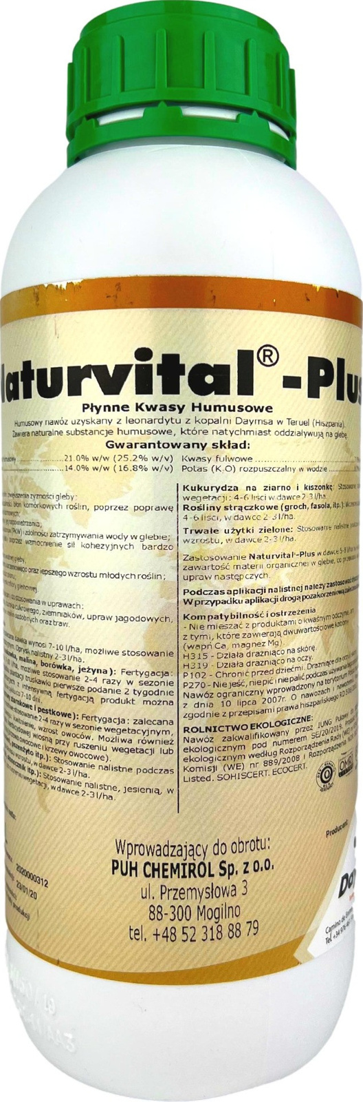 Naturvital Plus je huminové hnojivo pocházející výhradně z leonarditu z dolu Daymsa ve španělském Teruelu. Obsahuje přírodní huminové látky, které mají okamžitý účinek na půdu a jsou dostupné rostlinám. Na rozdíl od jiných zdrojů huminových kyselin zaručuje jejich čerpání z leonarditů vždy rovnoměrné složení a čistotu složení.