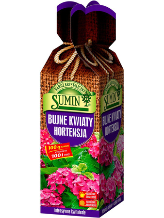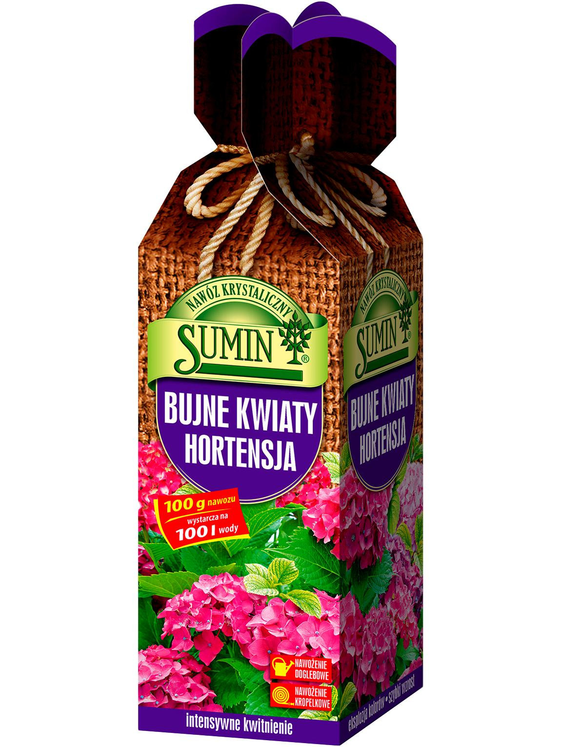 - Nawóz Bujne Kwiaty Hotrensja Suminzawiera niezbędne składniki odżywcze, które zapewniają intensywne kwitnienie, wybarwienie kwiatówi liści oraz zdrowy wygląd nawożonych roślin.