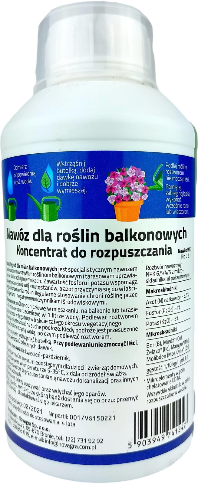- Nawóz do roślin balkonowych 0,5L Polski Ogródjest specjalistycznym nawozem dedykowanym wszystkim roślinom balkonowym i tarasowym uprawianym w donicach i pojemnikach. Zawartość fosforu i potasu wspomaga zawiązywanie i rozwój kwiatostanów, a azot przyczynia