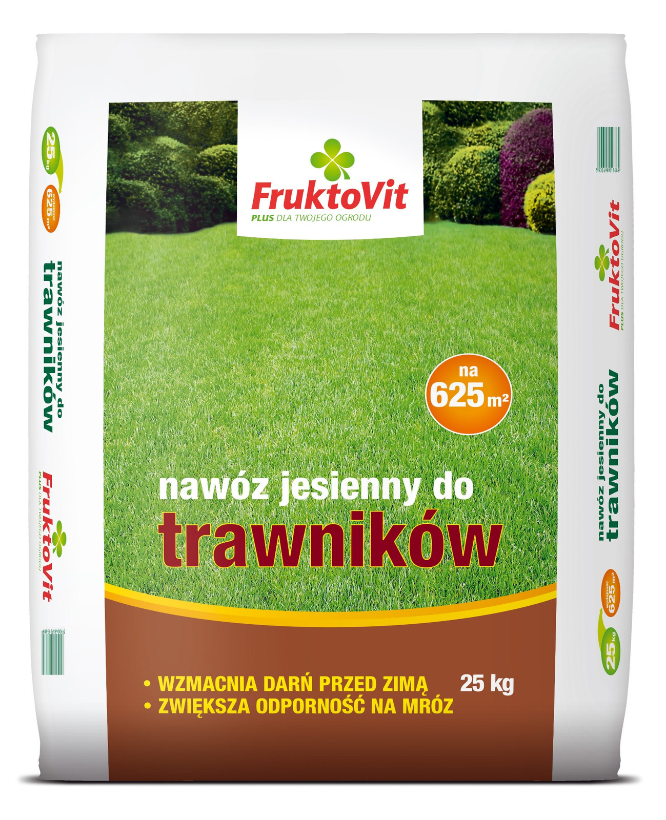 - FruktoVit PLUS nawóz jesienny do trawnikówzawiera składnikimineralne, które zaspokajają zapotrzebowanie pokarmowe trawnikajesienią oraz zapewniają lepszy start już od wczesnej wiosny. Obniżonazawartość azotu przedłuża okres wegetacji i wpływa na ładny wyg
