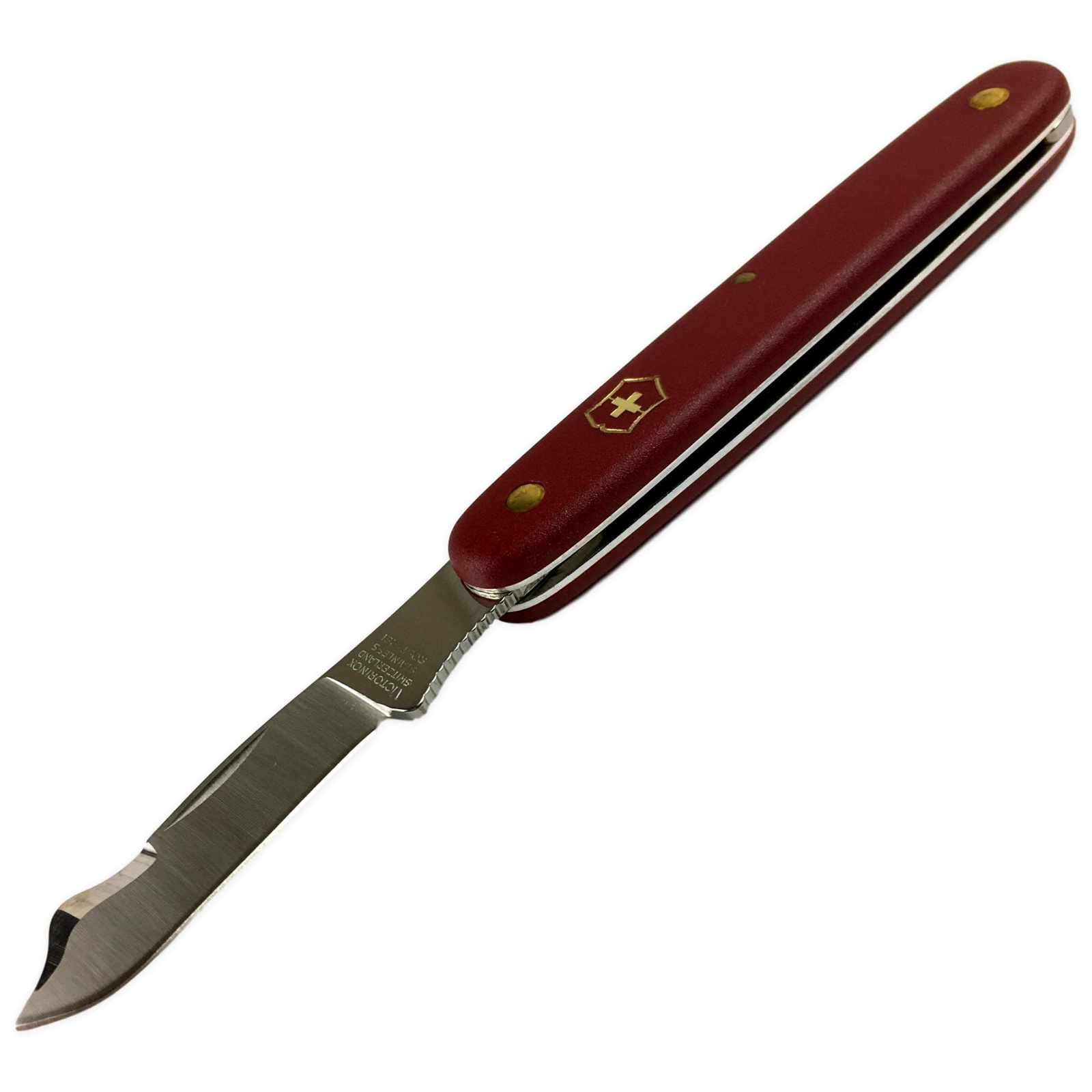 - Nóż ogrodniczyVictorinox z lekko zaokrąglonym ostrzem oraz piętką do szczepienia lub okulizacji. Ostrze ze stali z uformowaną kostką do odklejania kory zapewnia doskonałą ostrość i trwałość. Posiada jednostronnie szlifowane ostrze. Matowa okładzina z twor