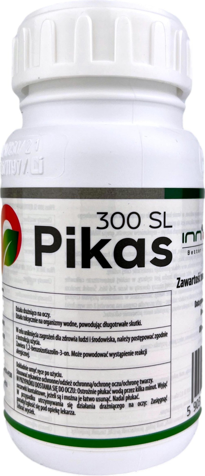 - Pikas 300 SLto herbicyd selektywny o działaniu układowym, stosowany nalistnie, w formie koncentratu do sporządzania roztworu wodnego.Środek zawiera substancję czynną zaliczaną do tzw. sztucznych auksyn, która hamuje działanie naturalnych hormonów roślinny
