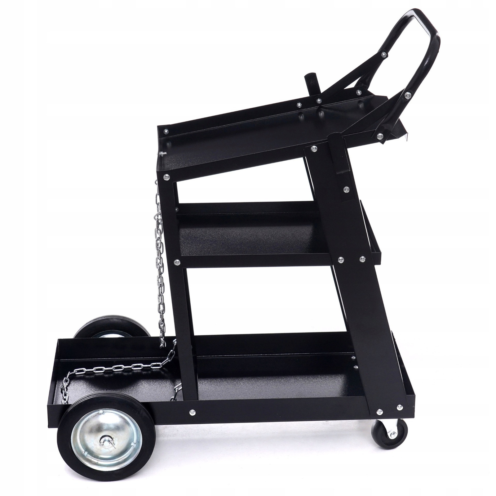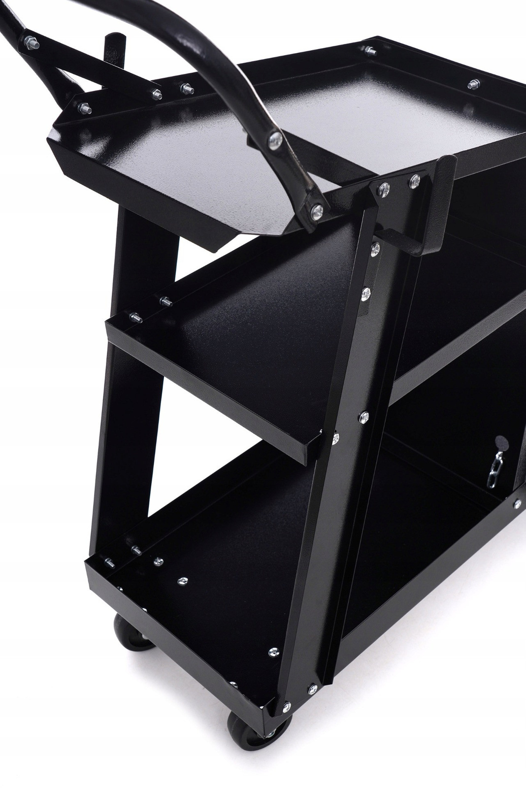 Tři police: Charakteristickým rysem tohoto vozíku je přítomnost tří polic, které umožňují efektivní rozdělení a uložení různých svařovacích komponentů. Do polic lze umístit svářečky, plynové lahve, elektrody, svářečské masky a další příslušenství a udržovat tak pořádek na pracovišti.
