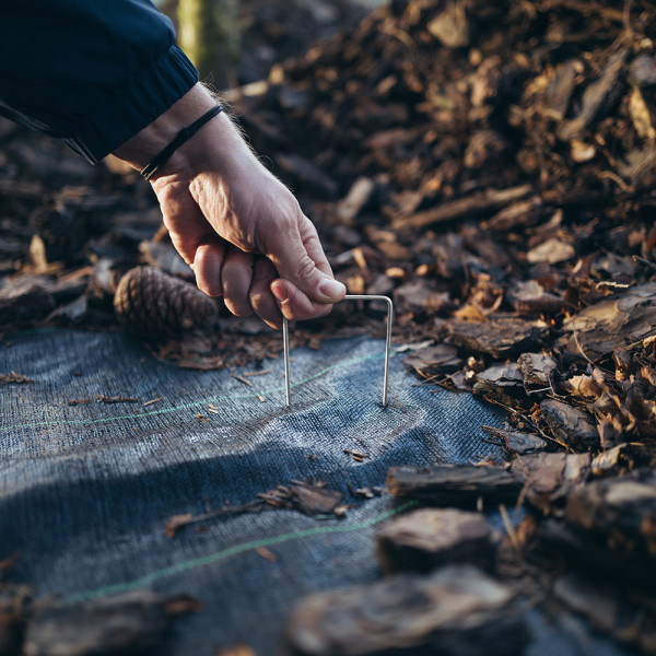 Szpilka metalowa galwanizowana w kształcie "U", szer. 3cm / wys. 20cm. Produkt wykonany ze stali galwanizowanej, cechujący się wytrzymałą konstrukcją. Idealna do mocowania agrotkanin i agrowłoknin.