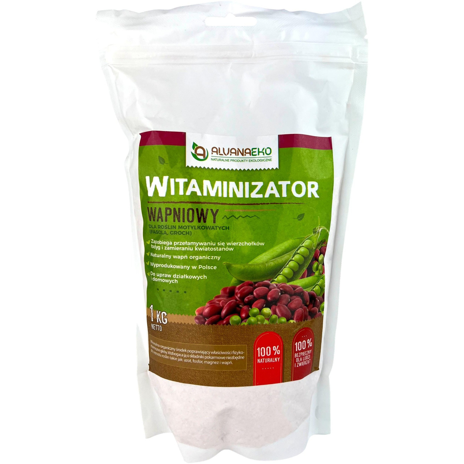 - VITAMINIZÁTOR VÁPNÍKU - MOTIVNÍ ROSTLINYFASOLA, HROUBYPro přídělové a domácí plodiny. 100% přírodní a bezpečné pro lidi i zvířata. Vyrobeno v Polsku. Zabraňuje lámání vrcholů stonků a odumírání květenství. Podporuje svěží