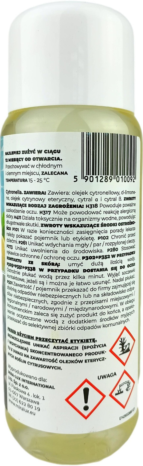 - Składniki: Naturalne wyciągi roślinne (w tym cytronella)