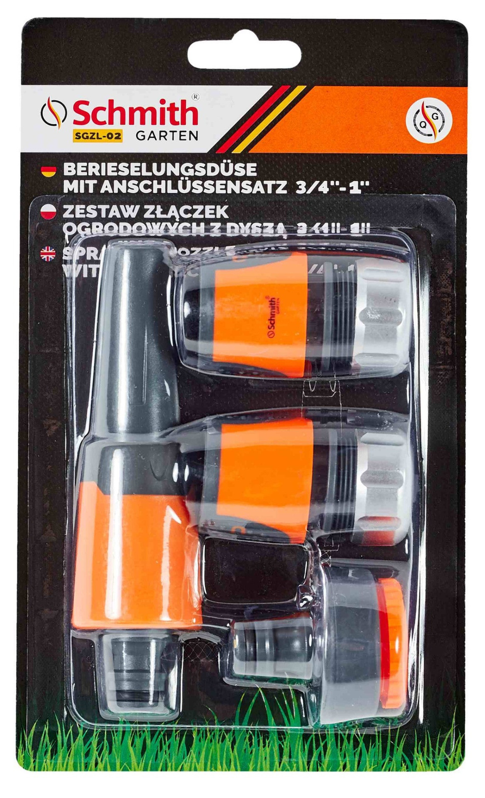 Zestaw złączek ogrodowych z dyszą Fest 3/4"-1" SCH to kompletny zestaw składający się z 4 elementów, wykonanych z wysokiej jakości tworzywa sztucznego. Idealny do samodzielnego i bezproblemowego zamontowania na wężu ogrodniczym bez konieczności używania dodatkowych narzędzi.