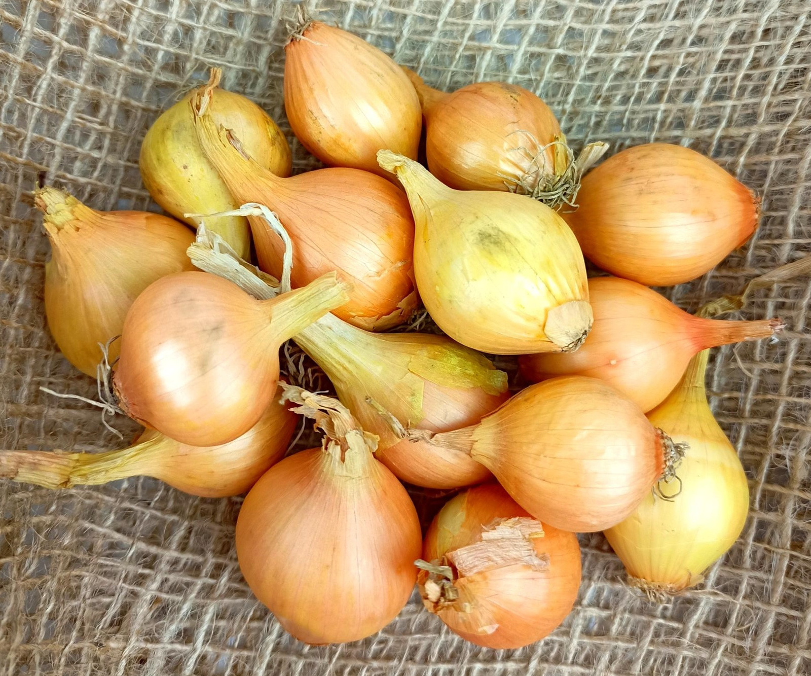 Cebule są kulisto-romboidalne, ich masa wynosi od 90 do 160 gramów. Pokryte są suchą, cienką, słomkowożółtą łuską, a ich miąższ jest soczysty i aromatyczny.