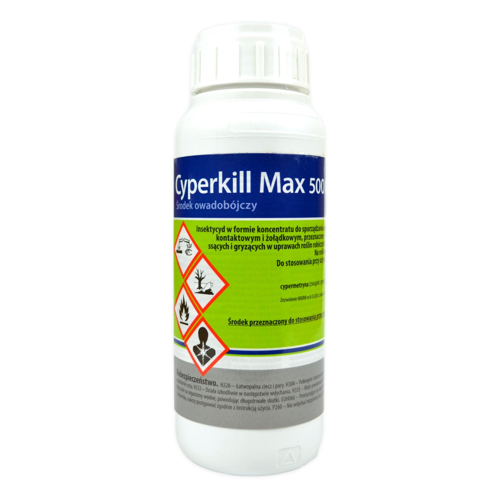 - Cyperkill Max 500 ECjest insektycydem w formie koncentratu do sporządzania emulsji wodnej, o działaniu kontaktowym i żołądkowym, przeznaczonym do zwalczania szkodników ssących i gryzących w uprawach roślin rolniczych, warzywnych i ozdobnych. Na roślinie d