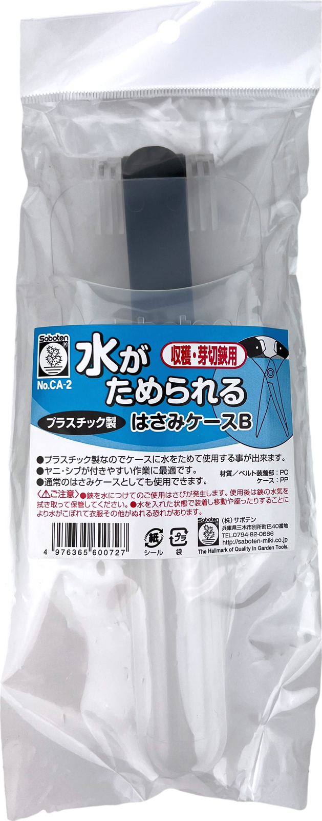 Chroń swoje sekatory Saboten w bezpiecznym plastikowym etui CA-2. Zaprojektowane specjalnie dla nożyc Saboten etui chroni je przed uszkodzeniami, a jednocześnie zapewnia bezpieczeństwo Tobie i Twoim ubraniom, gdy są przechowywane w kieszeniach lub przyczepione do paska.
