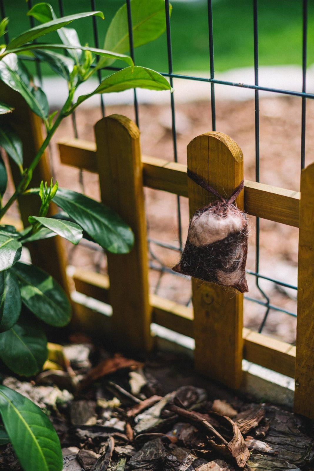 Przywiąż woreczek np. do płotu.