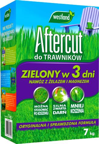 - AFTERCUT ZIELONY w 3 dnito szybki sposób na poprawienie wygladu trawnika. Zazielenia, wzmacnia i odżywia trawnik bez ryzyka wypalenia trawy. Zbilansowana formuła odżywia trawę od korzeni do liści.