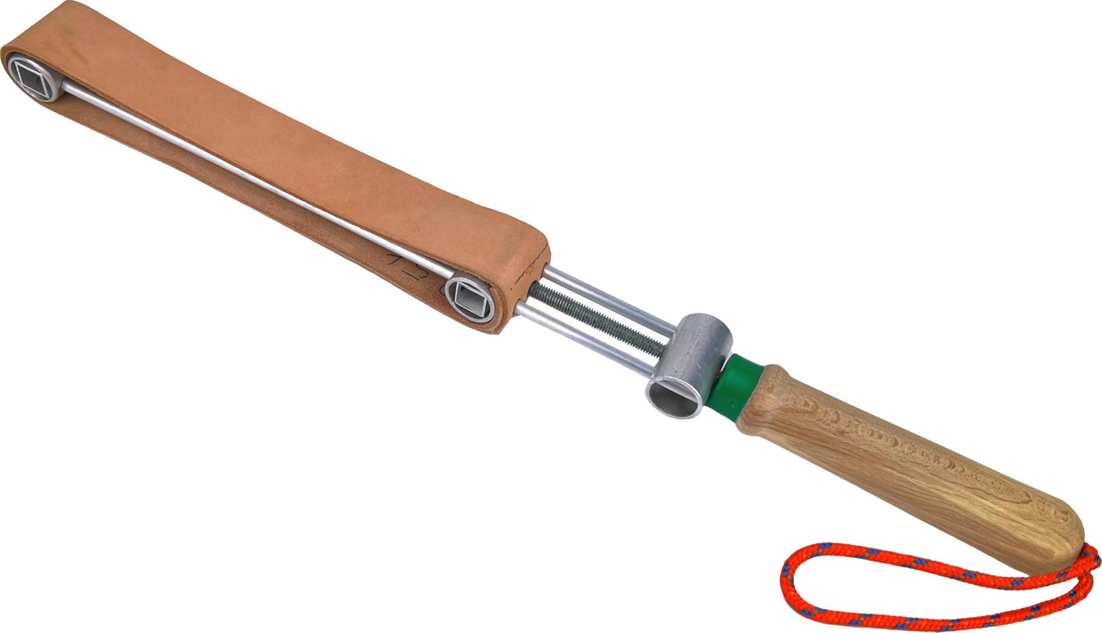 Profesjonalne narzędzie do ostrzenia noży na pasku skórzanym.