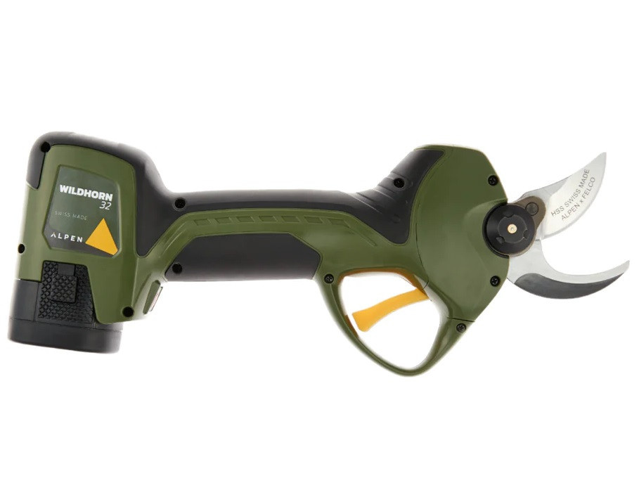 Niezawodność i wydajność są sercem WILDHORN 32, naszego szwajcarskiego elektrycznego sekatora do przycinania. Niezależnie od tego, czy używasz Wildhorn 32 do intensywnego, profesjonalnego przycinania w polu, czy do łatwego przycinania w ogrodzie, Wildhorn 32 zapewnia cały dzień pracy i jest wyposażony we wszystkie potrzebne akcesoria, które można łatwo przechowywać w wytrzymałej walizce. Jakość i trwałość ostrza HSS, zaprojektowanego i wyprodukowanego przez FELCO ©, nie ma sobie równych pod względem ostrości i trwałości. Wildhorn 32 zapewnia wszystko, czego potrzebujesz, aby intensywne prace przycinania były łatwiejsze, niż możesz sobie wyobrazić.