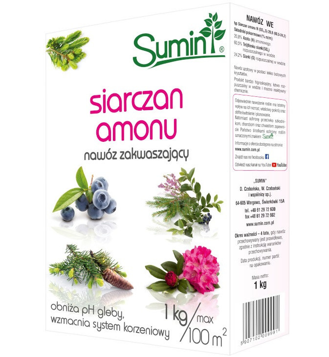 - SuminSiarczan amonuto nawóz krystaliczny dobrze rozpuszczalny w wodzie, co zwiększa jego skuteczność. Dzięki obecności formy amonowej jest nawozem długo działającym. Siarczan amonu jest typowym nawozem przedsiewnym do stosowania na wszystkich uprawach o o