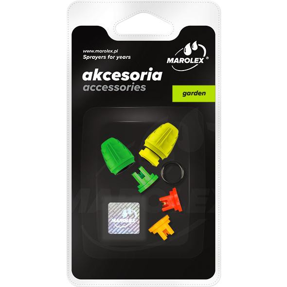 W zestawie znajduje się 5 dysz, które można łatwo zamontować w różnych modelach opryskiwaczy i lanc Marolex. Dzięki nim, precyzyjnie wykonasz wszelkie prace związane z opryskiwaniem roślin w Twoim ogrodzie.