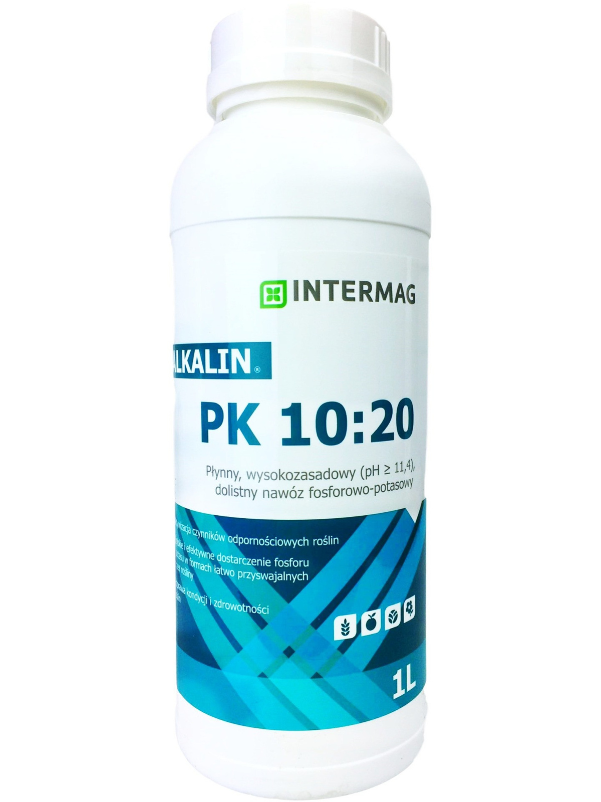 - ALKALIN PK 10:20to płynny, wysokozasadowy nawóz fosforowo-potasowy (pH ≥11,4) o proporcji składników P2O5:K2O = 10:20. Alkaliczny odczyn roztworów nawozu ALKALIN PK 10:20aktywizuje czynniki odpornościowe roślin i ogranicza rozwój chorób grzybowych.