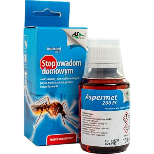 Concentrație de lucru: 2% (200 ml de produs la 10 litri de apă) la pulverizarea cu echipament de pulverizare obișnuit. Combaterea țânțarilor și căpușelor în aer liber: utilizați un spray cu picături grosiere la o concentrație de 1% (100 ml de produs în 10 litri de apă), la o doză de 1 litru de soluție de lucru pe 20 m2 de suprafață. Eficacitatea formulării și persistența efectului său sunt îmbunătățite considerabil prin utilizarea adjuvantului Grassfil, într-un raport de 1:1 față de Aspermet.
