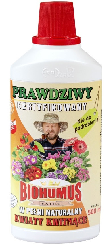 BIOHUMUS EXTRA KWIATY KWITNĄCE jest naturalnym nawozem płynnym najwyższej jakości z bardzo bogatą mikroflorą bakteryjną oraz próchnicą pokarmową, które znakomicie wpływają na wzrost, kondycję i zdrowie wszelkich odmian kwiatów kwitnących. Produkt ten zapewnia obfite i długotrwałe kwitnienie oraz intensywne wybarwienie liści i kwiatów.
