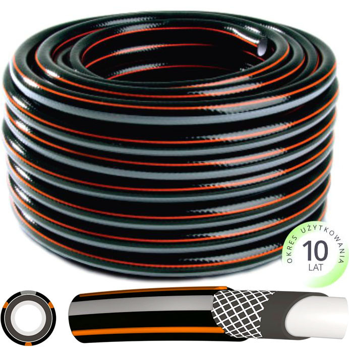 Furtunul de grădină Carbon Plus 3/4 50m Polix este un furtun cu 4 straturi fabricat din PVC flexibil pe bază de clorură de polivinil în suspensie, tereftalat și alte componente pentru a îmbunătăți flexibilitatea la temperaturi scăzute. În plus, este întărit cu un cerc textil, ceea ce îl face extrem de robust și rezistent la deteriorări mecanice.