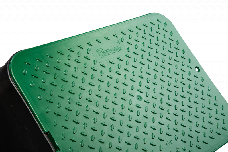 Cutia pentru supape "JUMBO" de 64x50 cm de la Bradas este ideală pentru oricine are nevoie de acces ușor la electrovalve, supape manuale, contoare de apă și alte echipamente de irigare. Cutia oferă acces la componentele cheie ale sistemelor de irigare, ascunzându-le în același timp în mod eficient.