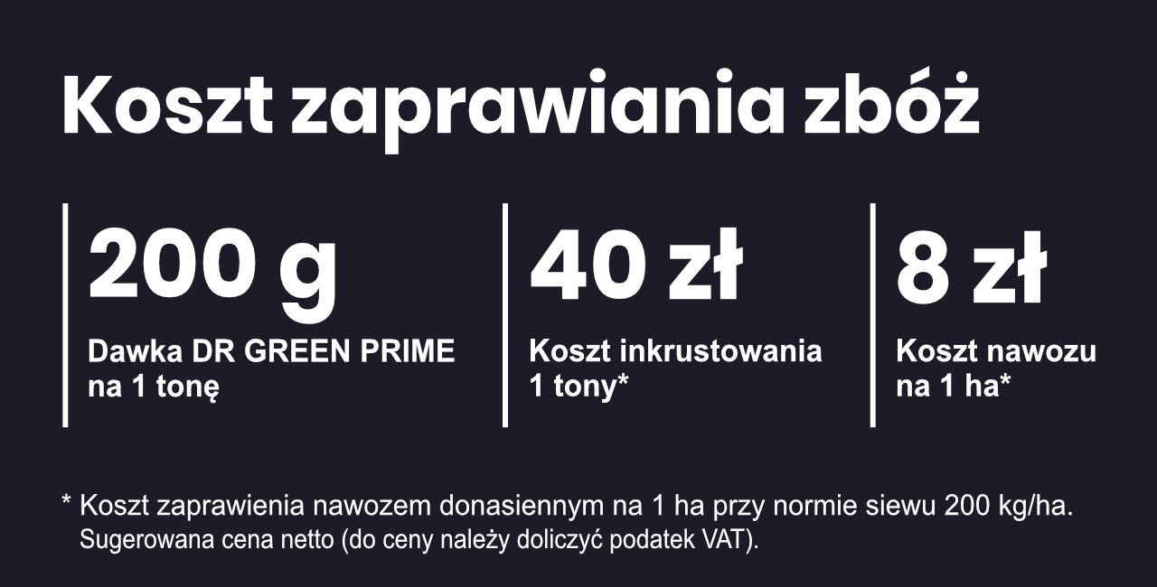 Prime 200g Dr Green trebuie aplicat la o doză de 200g la 1000 kg de semințe.