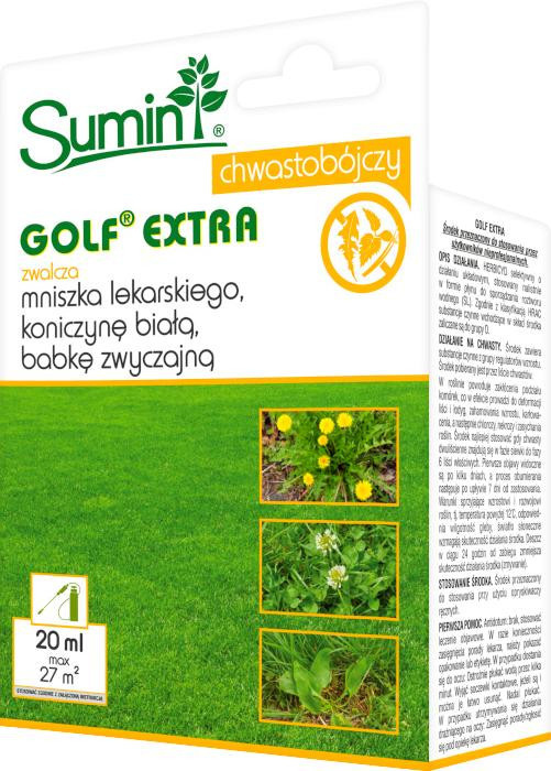 Golf Extra to herbicyd w formie płynu do sporządzania roztworu wodnego, przeznaczony do powschodowego zwalczania jednorocznych i wieloletnich chwastów dwuliściennych. Idealny do stosowania na trawnikach, boiskach sportowych, polach golfowych i innych rekreacyjnych obszarach trawiastych. Środek ten może być stosowany przy użyciu samobieżnego lub ciągnikowego opryskiwacza polowego, a także opryskiwacza ręcznego.