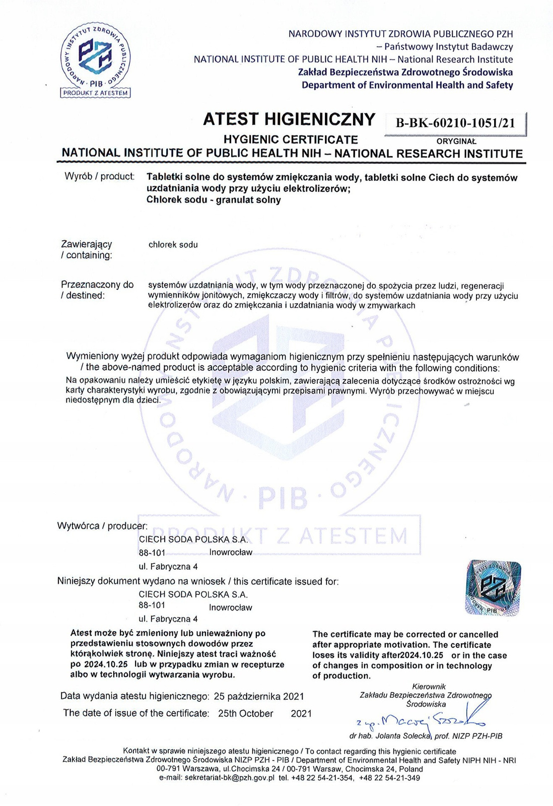 Posiada atest PZH oraz świadectwo kontroli jakości.