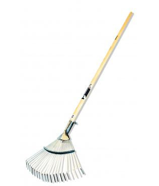 Mânerul greblei este fabricat din pin de înaltă calitate, acoperit cu lac pentru durabilitate și estetică. Forma ergonomică a mânerului face ca grebla să fie confortabil de utilizat, chiar și în timpul lucrului prelungit în grădină.