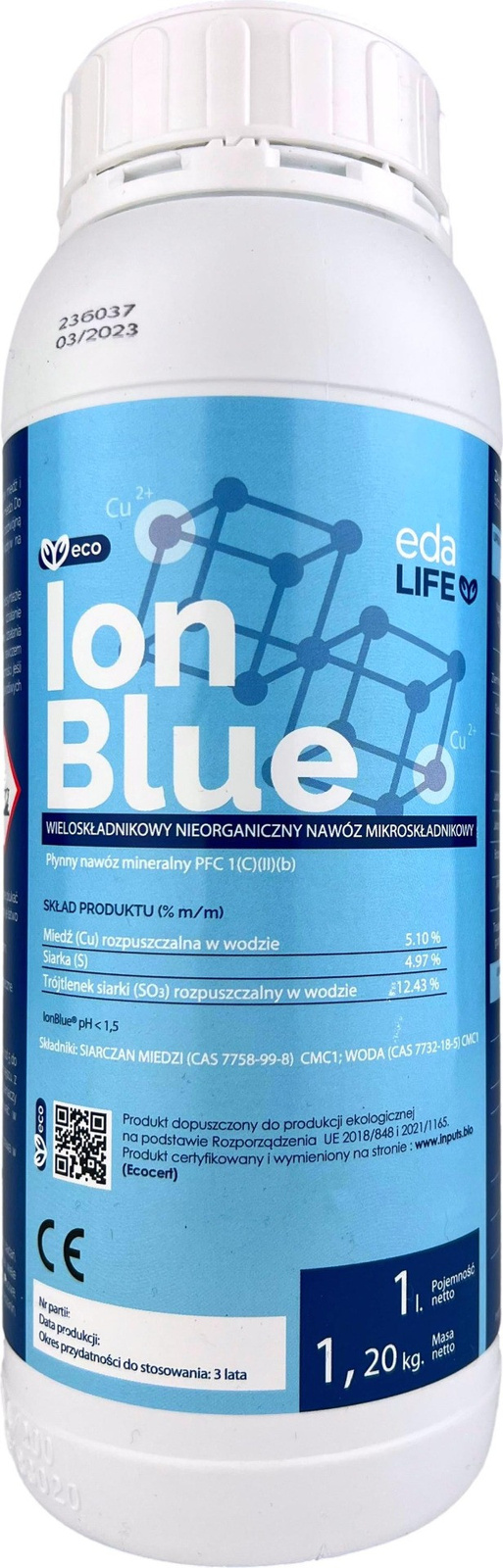 - IonBlue® este o formulă lichidă care conține cupru (Cu) și sulf (S) într-o formulă modernă pentru o utilizare sigură și eficientă. Recomandat pentru utilizare în majoritatea culturilor agricole, de legume și fructe. În plus față de