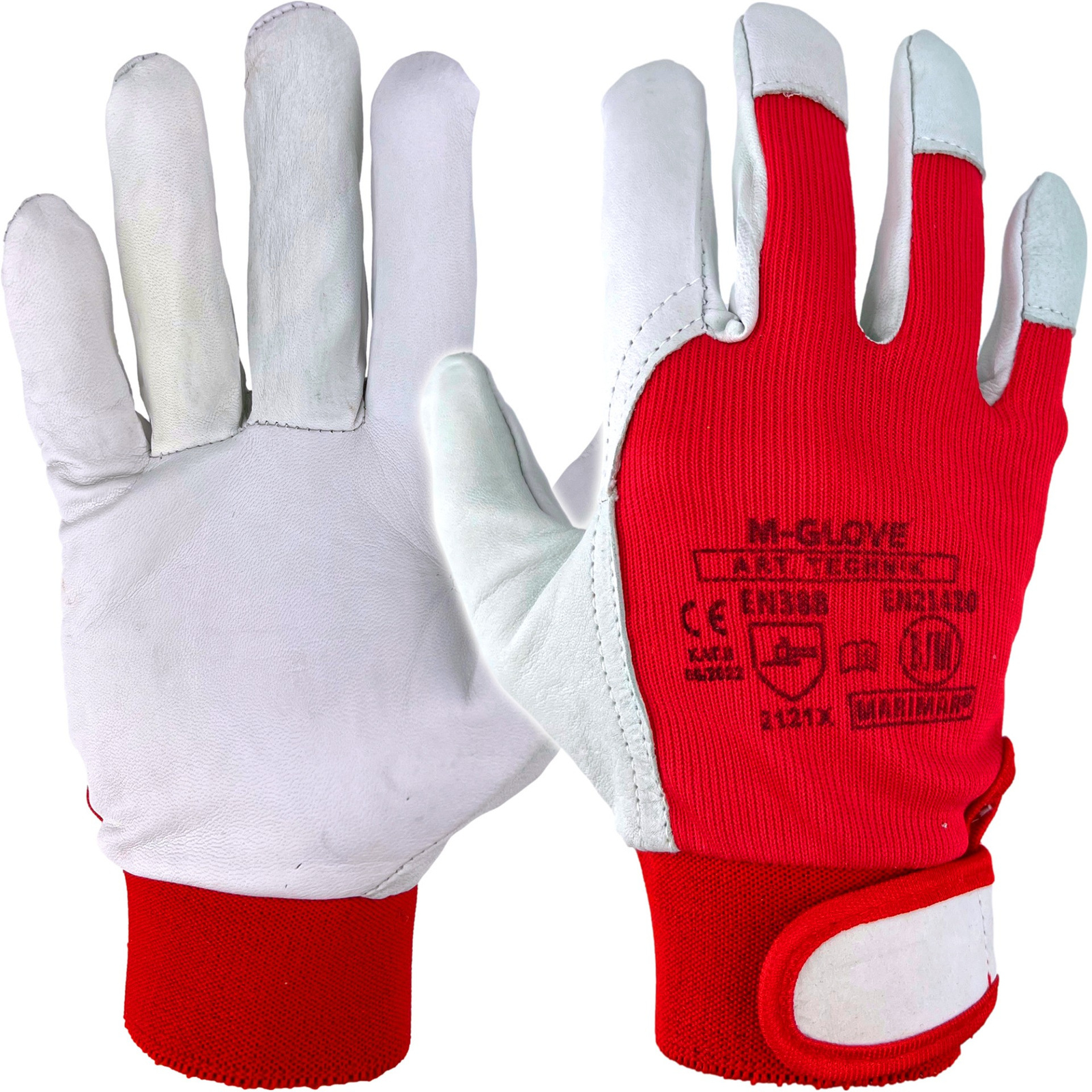 Mănuși de protecție din țesătură elastică tricotată întărită cu piele de capră, cu degete întregi, cu închidere Velcro la încheietura mâinii. Ideal pentru lucrările de asamblare care necesită precizie.