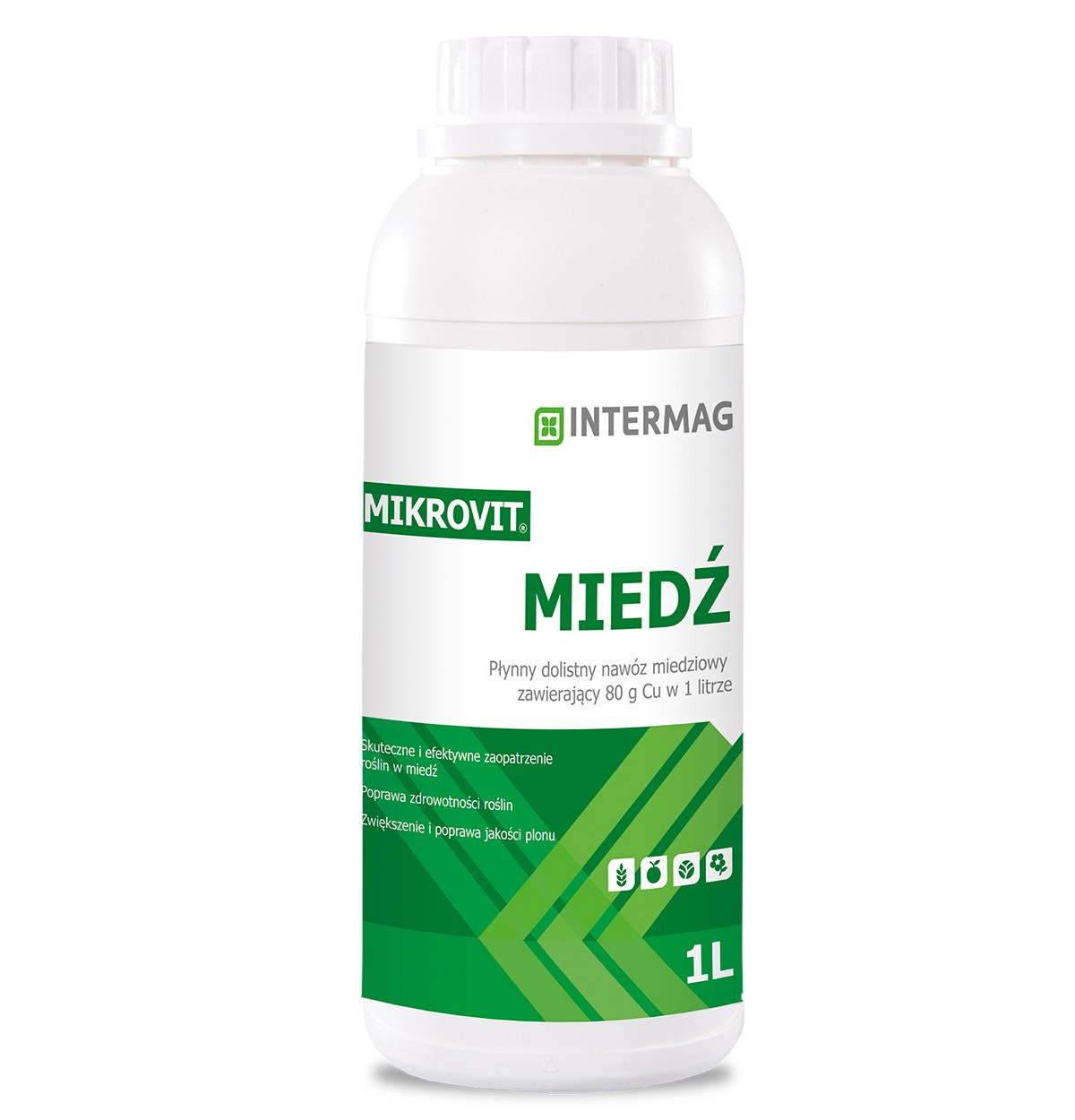 - MIKROVIT MIKROVIT MIKROVIT MIEDZ este un îngrășământ lichid care conține 80 g Cu per 1 litru, destinat aplicării foliare.Furnizează plantelor cupru, care este preluat și utilizat eficient de către plante.