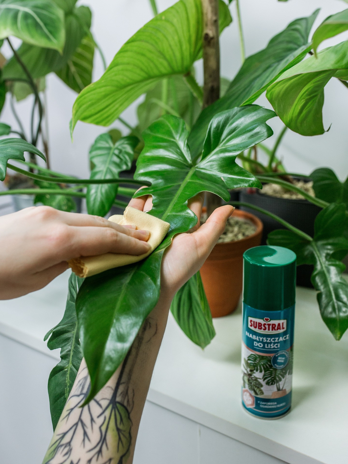 Łatwy sposób na domową dżunglę! Preparat od SUBSTRAL nabłyszcza liście roślin domowych, wytwarzając piękny, naturalny i długotrwały połysk. Skutecznie usuwa plamy wapienne z liści spowodowane przez twardą wodę. Zapobiega w znacznym stopniu osiadaniu kurzu. Ogranicza transpiracje liści w suchych pomieszczeniach, jednocześnie nie hamując naturalnego procesu oddychania.