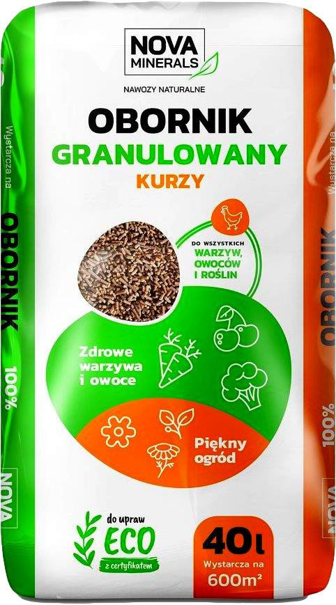 Obornik granulowany kurzy jest silnie skoncentrowanym naturalnym nawozem organicznym pochodzenia zwierzęcego o szerokim zastosowaniu zarówno w uprawach ogrodniczych, jak i w rolnictwie ekologicznym. Granulowana forma obornika została pozbawiona wszelkich niepożądanych składników, takich jak patogeny czy nasiona chwastów. Ze względu na swoją ekologiczną czystość, wysoką zawartość substancji humusowych oraz bogactwo składników mineralnych i mikroelementów, nawóz szczególnie zalecany jest na glebach wyjałowionych, ubogich w składniki pokarmowe. Przynosi znakomite rezultaty we wszelkiego rodzaju uprawach warzywnych, zielarskich, działkowych i sadowniczych, w tym także roślin ozdobnych i doniczkowych oraz pielęgnacji trawników.