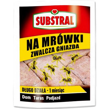 - Na mrówki 100g Substralto Preparat w granulacie do posypania lub do rozpuszczenia. Zwalcza mrówki ogrodowe i domowe w domu, na tarasie oraz podjeździe. Zwalcza również gniazda mrówek!