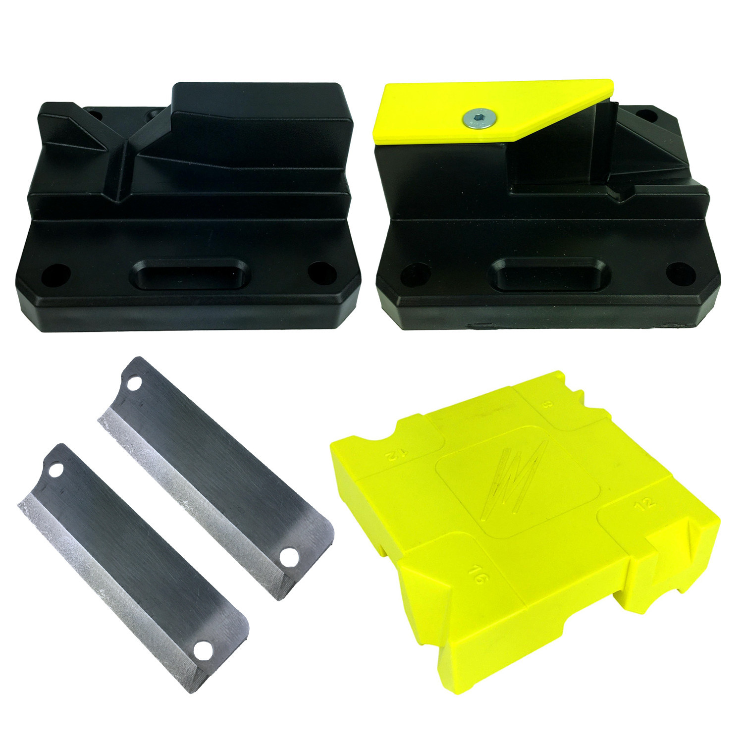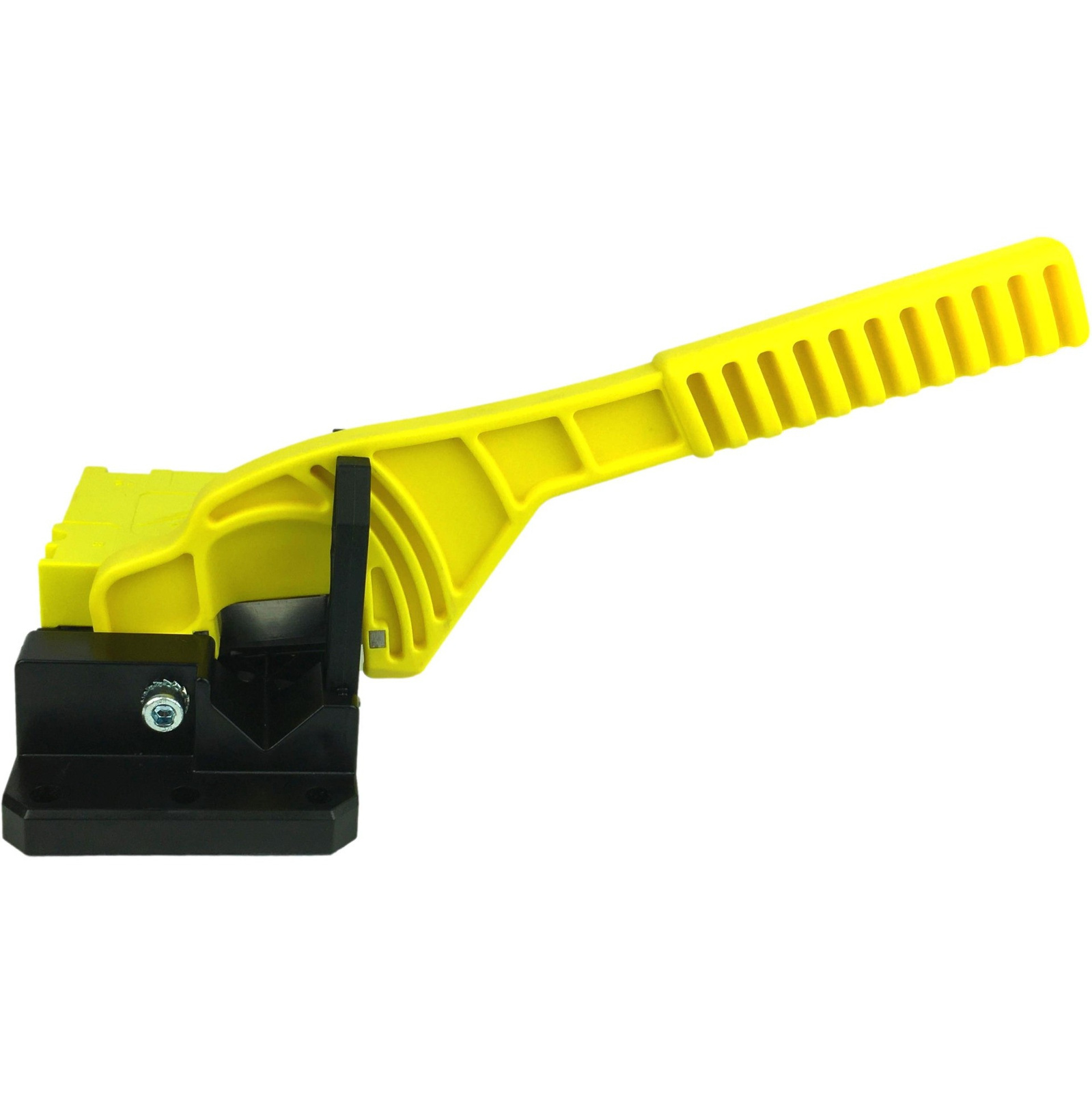 Plasați un bloc galben cu patru sloturi cu găuri diferite, potrivindu-l cu gaura din modulul de bază. În funcție de dimensiunea materialului pe care îl tăiați, aveți de ales între patru tipuri de mufe. Pentru a schimba diametrul, glisați blocul galben în sus și apoi rotiți-l cu 90 de grade la dimensiunea de tăiere dorită.