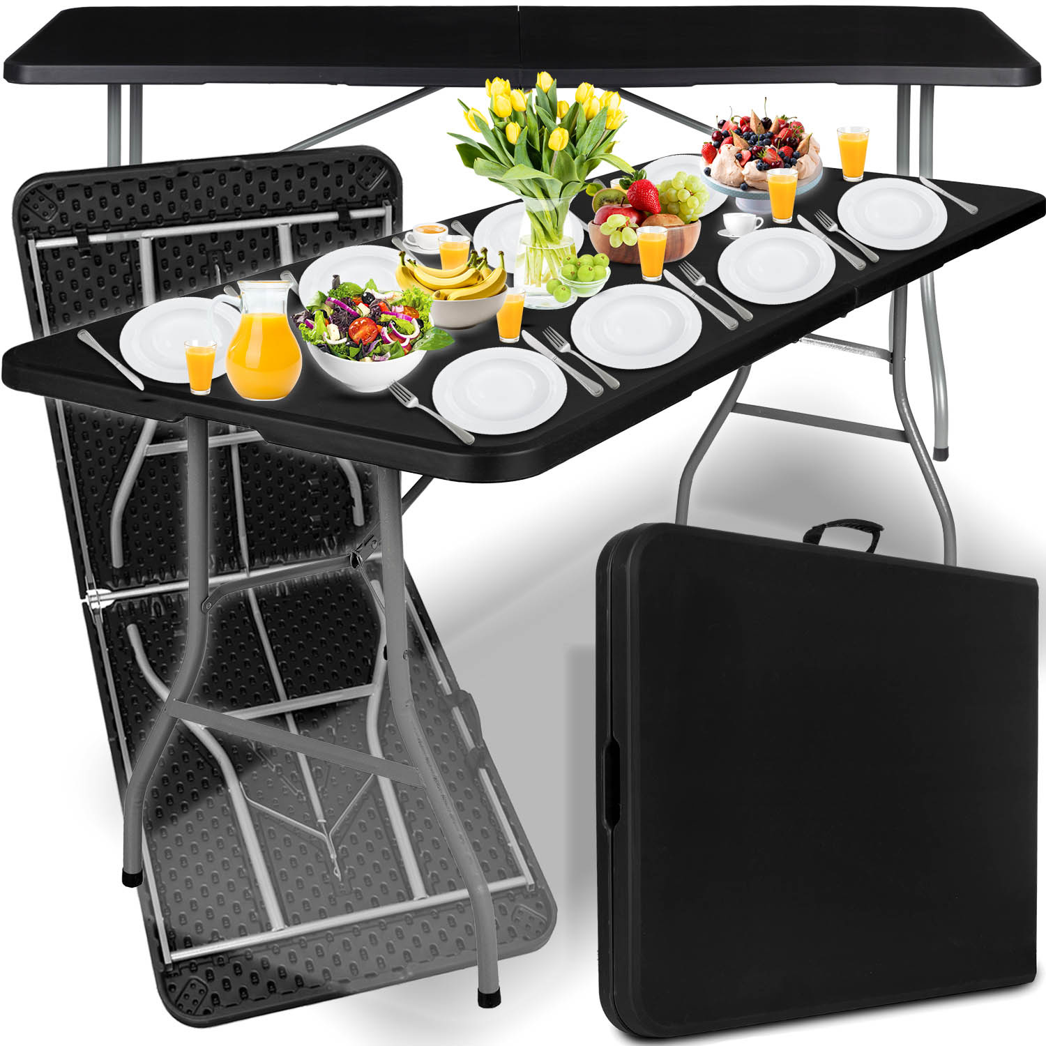 Stół składany cateringowy CZARNY 180x74x74cm