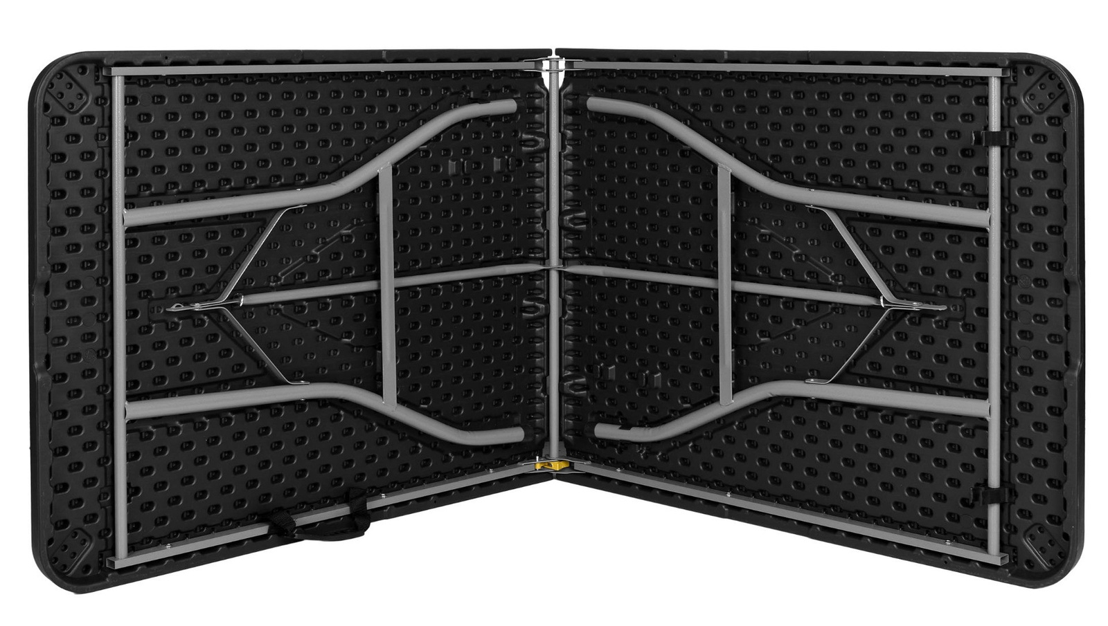Stół składany w walizkę cateringowy do wielu zastosowań zarówno na zewnątrz jak i wewnątrz pomieszczeń. Prosta konstrukcja na którą składa się wytrzymały blat z polietylenu HDPE i metalowe, malowane proszkowo nogi. Stół łatwy do czyszczenia oraz odporny na zarysowania.