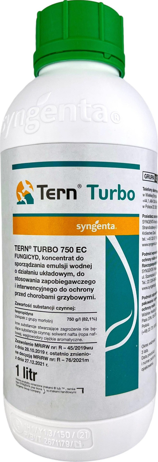 Tern Turbo 750 EC to zaawansowany środek grzybobójczy o działaniu układowym, który znajduje zastosowanie zarówno zapobiegawczo, jak i interwencyjnie w ochronie buraka, zbóż i traw przed chorobami grzybowymi. Produkt jest dostępny w postaci koncentratu do sporządzania emulsji wodnej (EC) i może być aplikowany za pomocą opryskiwaczy polowych, zarówno samobieżnych, jak i ciągnikowych.