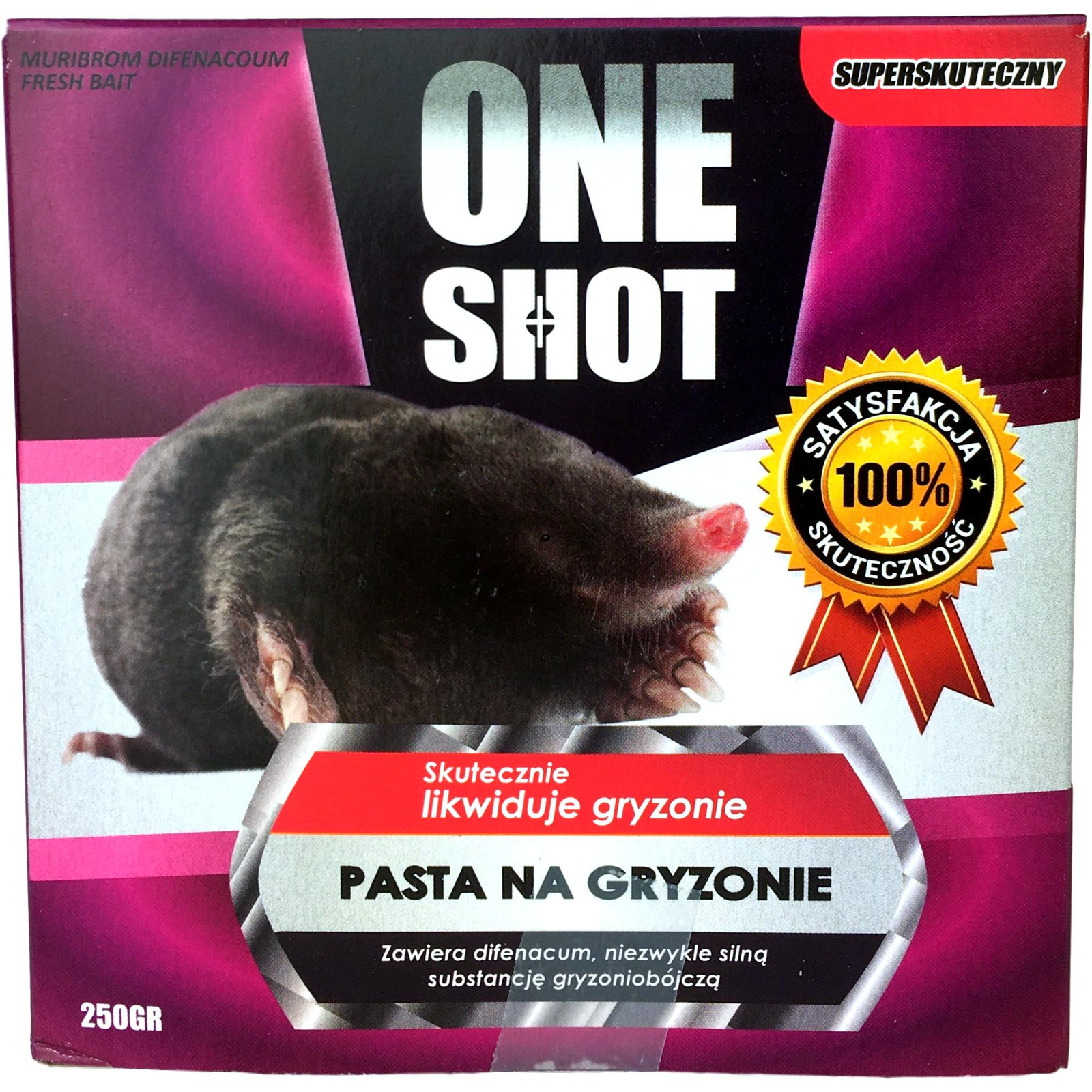Trutka Pasta na Gryzonie ONE SHOT 250g to niezwykle skuteczny sposób na zwalczanie szczurów i myszy. Dedykowana do stosowania wewnątrz i wokół budynków, w środkach transportu, na terenach otwartych oraz wysypiskach odpadów. Produkt zawiera aktywną substancję - bromadiolon, zapewniającą wysoką skuteczność w eliminacji gryzoni. Stosowanie pasty zapewni Państwu spokój i czystość, eliminując problem gryzoni w sposób szybki i efektywny.