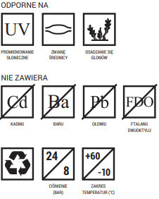 • Materiał: Elastyczne PCW na bazie suspensyjnego polichlorku winylu, tereftalanu oraz innych komponentów