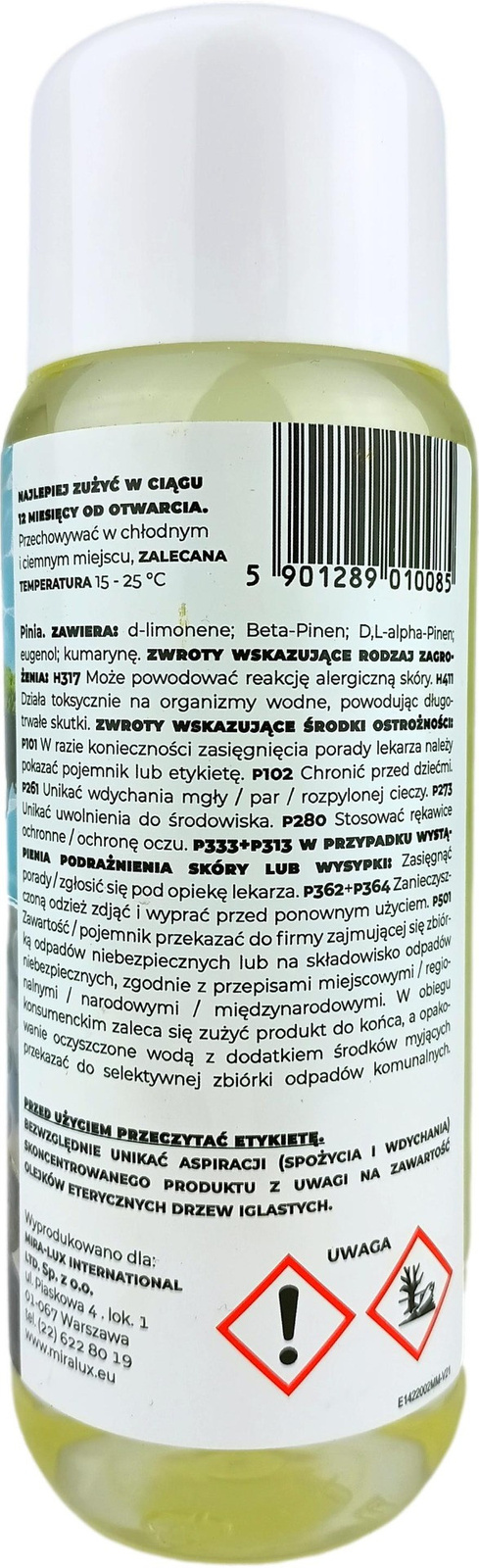 W celu osiągnięcia najlepszego efektu, zaleca się dodanie 5-10 ml zapachu PINIA na każde 1000 litrów wody.